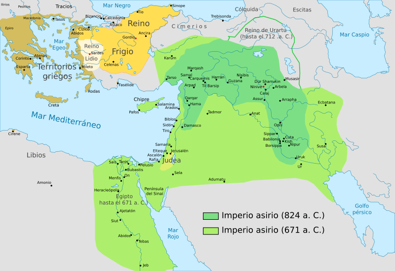 Los asirios liderados por su rey Tiglat-Piléser III atacaron Babilonia en el año 728 a.C. conquistando la ciudad y el territorio en definitiva, sometiendo a los acadios al dominio asirio; sin embargo las revueltas de estos contra los asirios eran constantes. En el año 722 a.C. sube al trono de Asiria el rey Sargón II, Sarru-Kin en acadio. Fue un rey poderoso y conocido por ser un monarca guerrero y gran conquistador llevando al reino de Asiria a su máxima expansión y obteniendo numerosos triunfos por medio de sus victorias militares. En el año 720 a.C. derrotó a Babilonia y a un ejército de coalición de arameos y egipcios. En el 714 a.C. derrotó al reino de Urartu en el norte de Mesopotamia. En el 713 a.C. incorporó al reino Asirio por medio de la guerra a los reinos de Tabal y Cilicia en el sureste de Anatolia (Turquía).