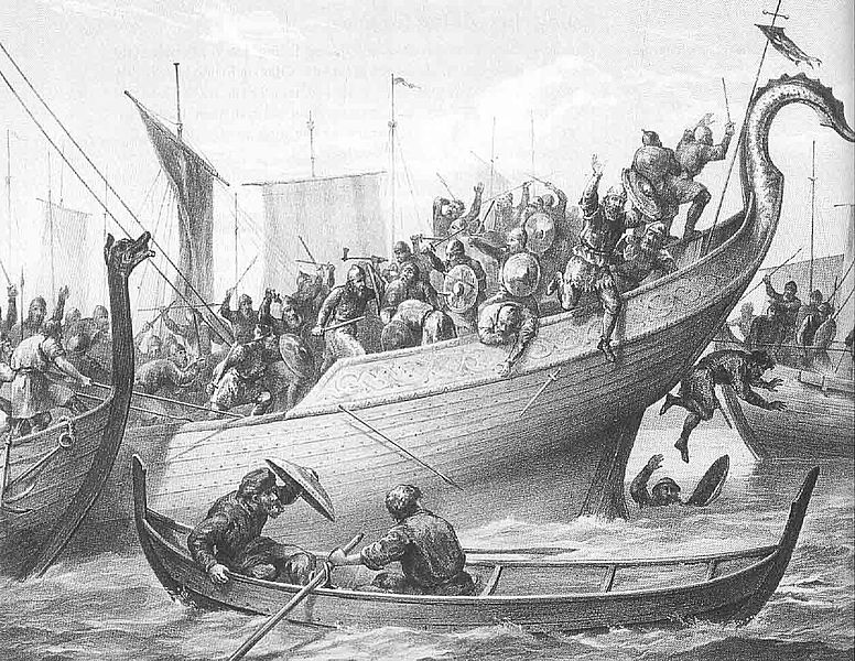 La Batalla Naval de Hafrsfjord, fijada en 782 d.C. en Escandinavia fue una batalla naval decisiva donde las fuerzas del rey Harald I de Noruega o Haraldr Halfdanarson (Harald “Cabellera Hermosa”) derrotaron a una coalición de barcos vikingos de las regiones de Hordaland, Rogaland, Agder y Telemark, permitiendo la unificación de Noruega y convirtiendo a Harald en su primer rey.