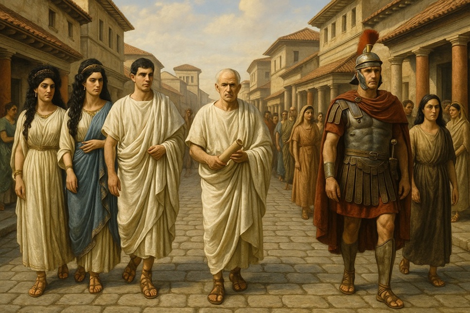 A partir del siglo VIII a.C. la península itálica contaba con una población distribuida al norte y al centro los etruscos e itálicos; al oeste con las tribus de los ligures; los vénetos y los yapigios en el este (sobre las costas del mar Adriático) cuya procedencia era Iliria; al sur las colonias griegas. La ciudad de Roma primitiva no era muy diferente a la cultura y ciudades griegas en sus inicios. Su población estaba conformada en las “gens” o familias como base estructural y social. Cada familia estaba gobernada por un líder o Patriarca, también conocido como: “Pater” o Patricio. Así, la ciudad de Roma iniciaba su historia conviviendo con otras ciudades latinas y con los etruscos en el centro y los griegos en el sur de la península itálica.