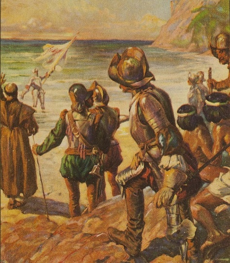 A los pocos días lograban alcanzar la playa frente al océano. Vasco Nuñez penetraría a las aguas de la costa hasta las rodillas proclamando que el mar y todas las tierras que bañaba como pertenencia de la corona española bautizando al nuevo océano como “El mar del Sur”.