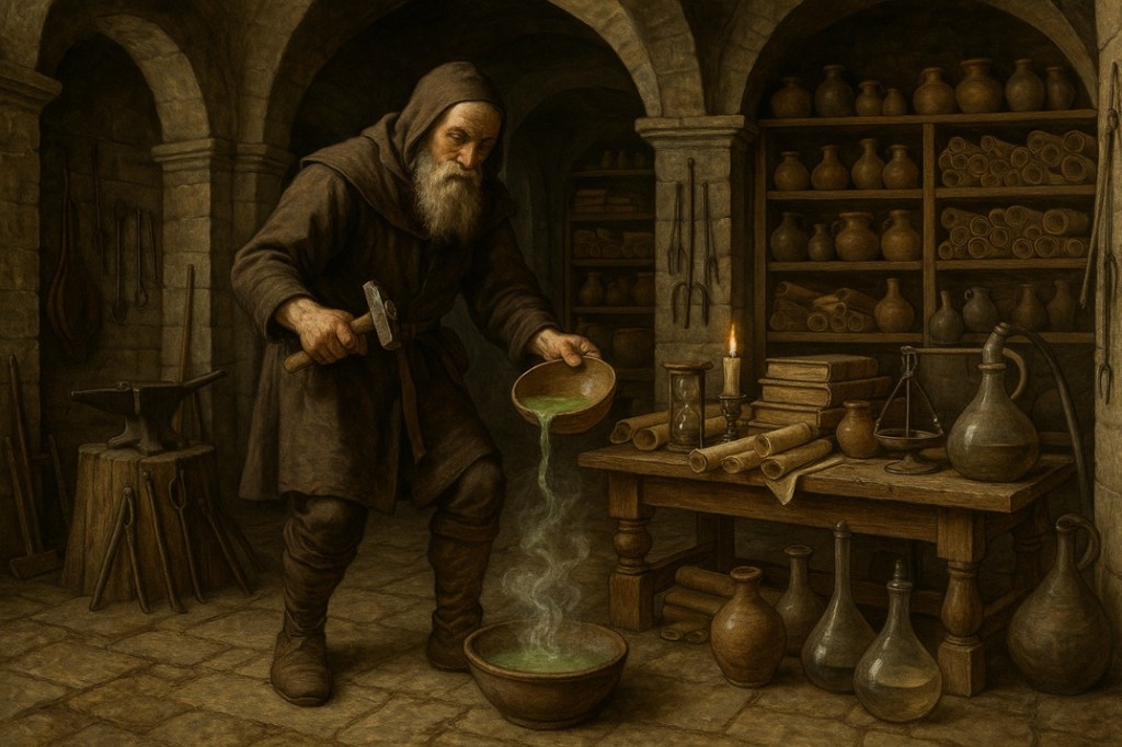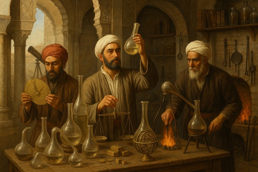 Aparecen de tal forma hombres de ciencia en sus primeros laboratorios rudimentarios en sucias recámaras, ocultos en calabozos, iglesias, castillos y ciudades, trabajando en las formas de modificar diversos compuestos, experimentando con diversos materiales, buscando la creación de nuevas materias, realizando experimentos de todo tipo y el estudio del comportamiento de las sustancias, junto con la búsqueda de su mutación en el ansiado oro. Dentro de este rango de hombres dedicados al saber científico antiguo en la Historia podríamos catalogar a personajes en la Edad Media como el franciscano Roger Bacon o el árabe Al Razi. Estos y otros científicos resultaron ser los primeros hombres precursores de saberes científicos como la física, la química, la medicina y la metalurgia.