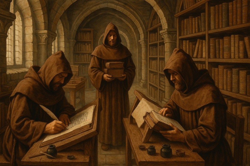 Durante la Edad media los monasterios desempeñaron muchas funciones, además de profesar y preservar los dogmas del campo espiritual del cristianismo, se caracterizaron por ser centros de investigación y recopilación de conocimientos almacenando antiguos pergaminos y posteriormente copiándolos, situación que permitió el surgimiento de los Scriptorium y los copistas, estos últimos, monjes dedicados al arte de copiar y preservar manuscritos y libros antiguos.