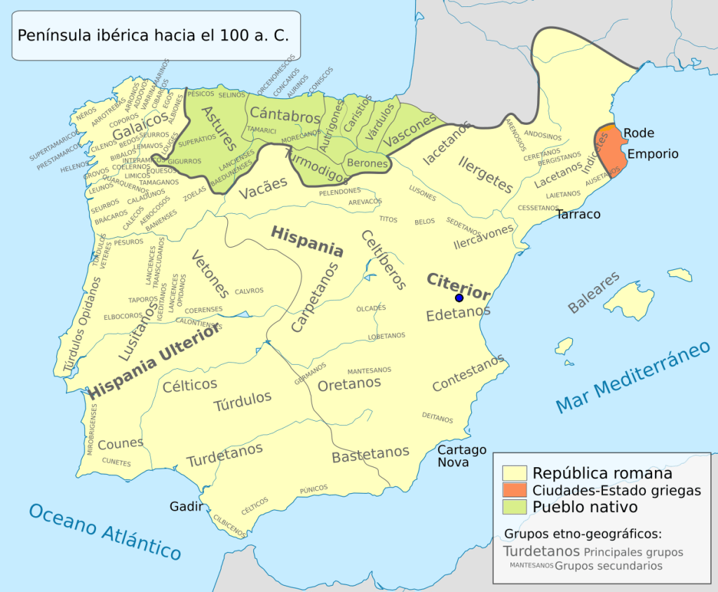 Con la conquista de los territorios cartagineses de Hispania por Roma durante la segunda guerra púnica se formarían dos regiones romanas: Hispania Citerior e Hispania Ulterior en el este (levante) y sur (Andalucía) de Iberia respectivamente, en definitiva, a partir del año 197 a.C.