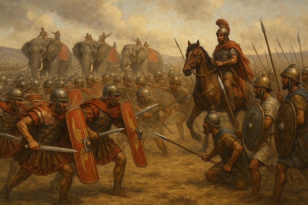 Aníbal, con escaso número de efectivos en su ejército, lograría derrotar a los ejércitos romanos en las Batallas de Tesino en 218 a.C., Trebia 218 a.C., Trasimeno 217 a.C. y Cannas en 216 a.C., al interior de la península italiana, aniquilando a dos legiones romanas y logrando mantenerse en la región cerca de 16 años sin que Roma pudiera expulsarle; ya que la República mantenía una guerra abierta contra Filipo V de Macedonia y posteriormente contra Grecia en ese lapso de tiempo.