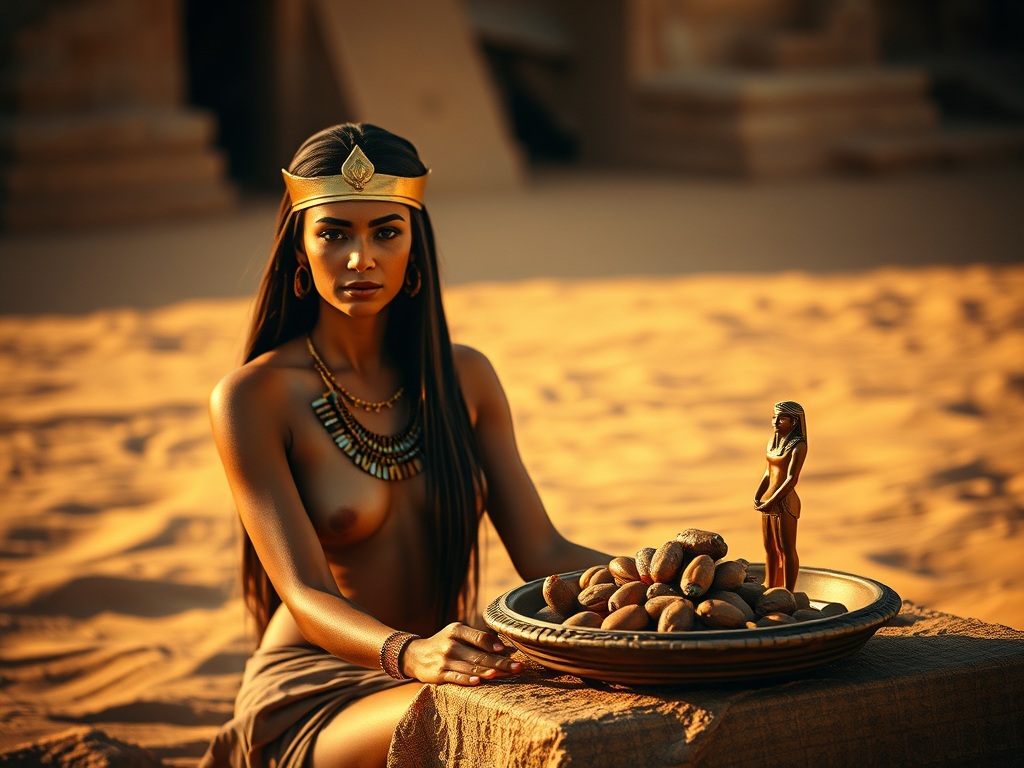 Así como existieron imágenes de carácter fálico relacionadas como tributo al dios Bes, las estatuillas de mujeres desnudas a manera de ushebti en tributo a Hathor eran figurillas conocidas como «concubinas del muerto», halladas en enterramientos de mujeres y hombres, consistiendo en pequeñas esculturas de mujeres desnudas comúnmente con el triángulo púbico o genitales femeninos bien marcados; en otras versiones mujeres desnudas con collares y un ceñidor en torno a las caderas en una sola figura (sirvientas esclavas), tendidas sobre un lecho y en otras acompañadas de un bebé.