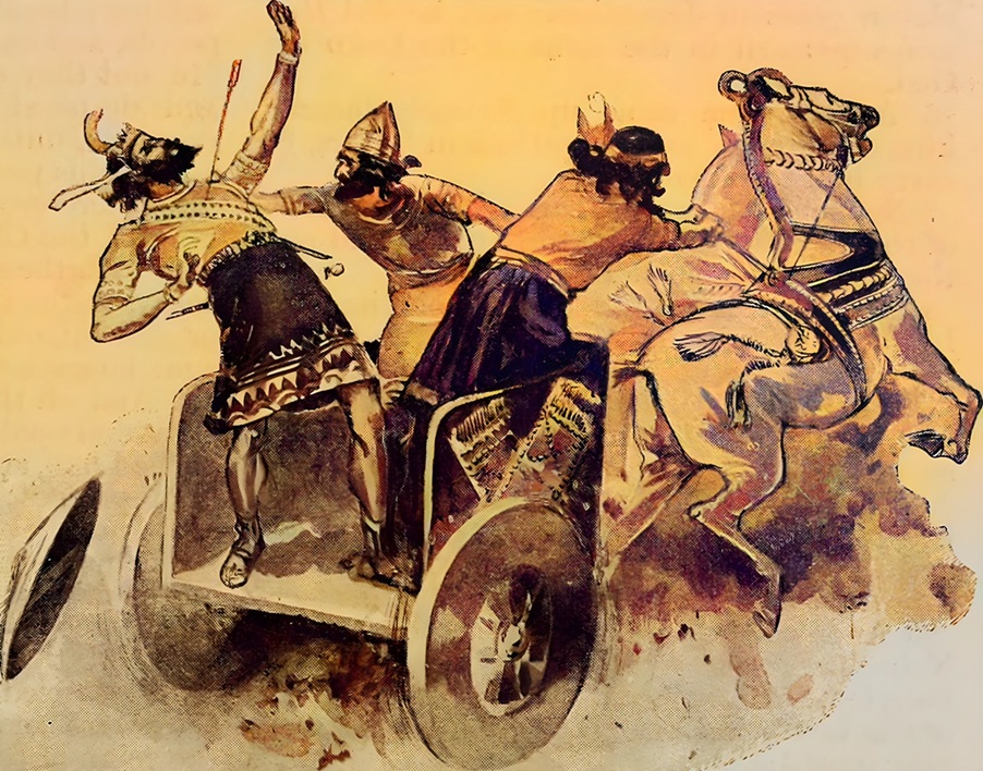 Los carros de guerra fueron introducidos a partir del tercer milenio a. de J.C. por los sumerios. Otros autores postulan desde mediados del IV milenio a. de J.C. Estaban fabricados de madera, mimbre y fibras vegetales entretejidas. En un principio en Sumeria eran de cuatro ruedas, eran tirados por asnos o anshu (sumerio) y utilizados para transportes de equipo de guerra y comida. Hacia mediados del segundo milenio a. de J.C. se introdujo el caballo a Mesopotamia (1600 a.C.) por los hititias y Kasitas; aunque la domesticación del caballo posiblemente inició desde el 2000 a.C. en el noreste de Mesopotamia.