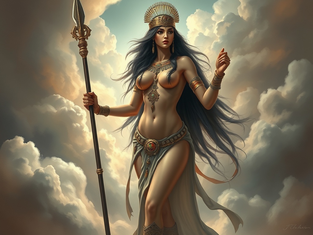 Enlil viajó a un pantano, ahí descubrió a la diosa Ninlil (diosa del aire) cuando se bañaba desnuda y se enamoró de ella. Ambos yacieron juntos. Otras versiones mencionan que Enlil violó a Ninlil, concibiendo a Sin (Suen o Nannar), dios de la luna. Este último se casa con la diosa Ningal (diosa de la luna creciente). Sin y Ningal al contraer nupcias dan origen a los dioses: Utu o Shamash, dios de la justicia, y a su hermana gemela: Inanna o Ishtar (diosa de la lujuria, el deseo carnal, la muerte y la guerra).