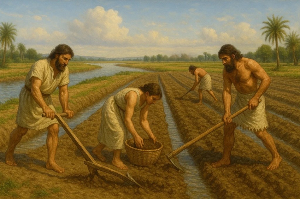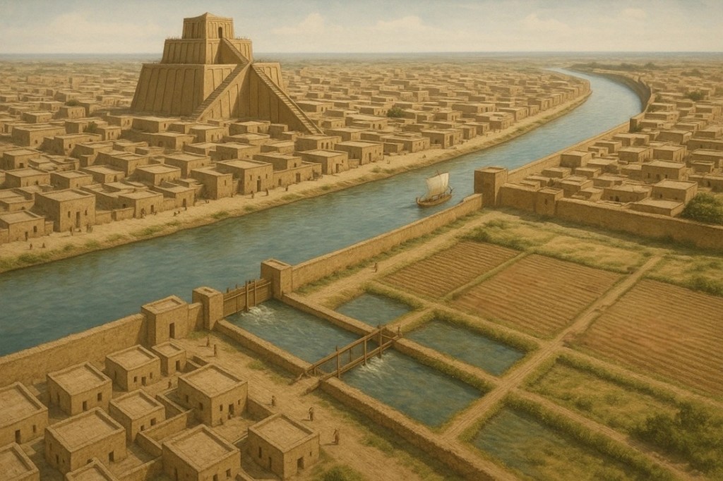 A pesar de constituir una fuente de vida y progreso, ambos ríos eran a su vez un peligro. Las escasas lluvias anuales, el territorio desértico y las altas temperaturas provocaban que la mayor parte de las tierras de Mesopotamia fueran inadecuadas para el cultivo y la ganadería, excepto en el margen fluvial de ambos ríos, por lo que los primeros pobladores se establecieron en sus orillas. Debido a la amenaza de sus crecidas los primeros habitantes alcanzaron una solución hacia el IV Milenio a.C. con el surgimiento de canales de irrigación y diques de contención lo que permitió modificar el curso de las aguas y el traslado de las mismas a terrenos cercanos y alejados, transformándolos en campos de cultivo; hecho que permitió el crecimiento de los poblados transformándolos en las primeras ciudades y asentamientos con zonas agrícolas. Esto desencadenó que las personas dependieran de la agricultura para su subsistencia, desarrollando posteriormente el comercio de los excedentes agrícolas.