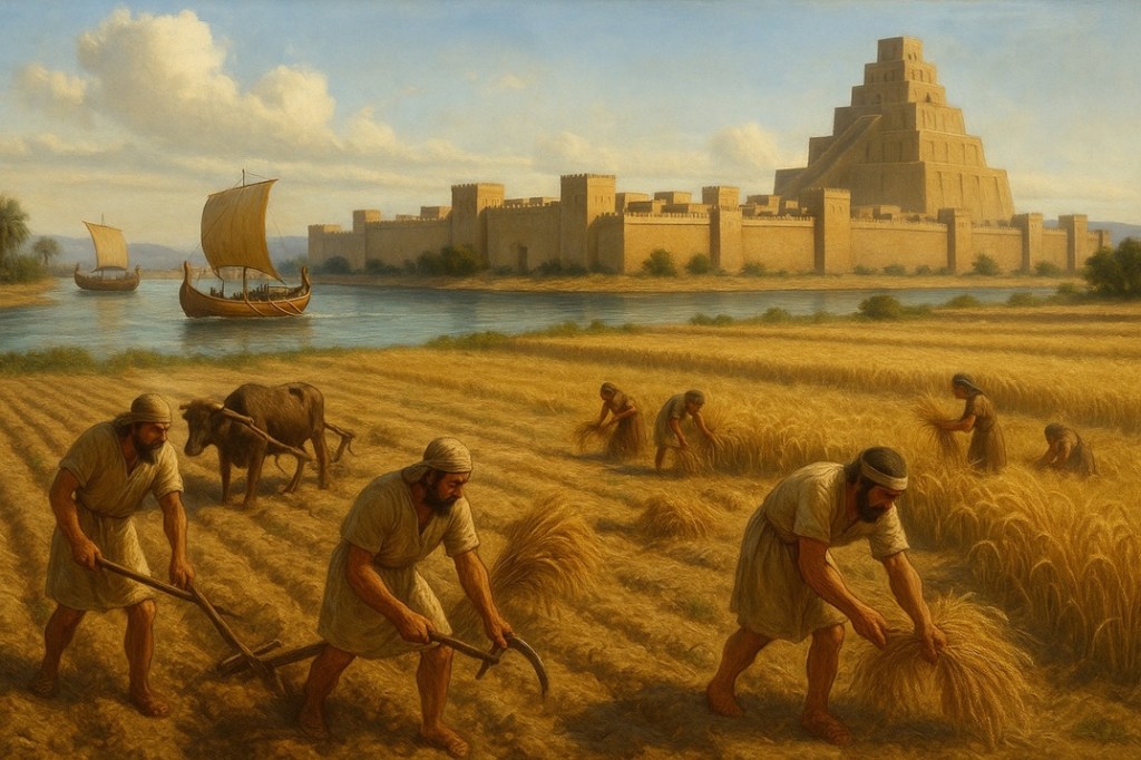 Gracias al control de los canales se evitaron inundaciones y la irrigación de los campos permitiendo una expansión agrícola al cultivar cereales como el trigo y la cebada; lo que condujo a una expansión agrícola y una estabilidad económica con un excedente de alimentos que fueron esenciales para el comercio. Sin embargo para el excedente fue necesario el aprovisionamiento de las cosechas para su posterior distribución, por lo que se inventaron los graneros cuya función principal fue el almacenamiento de trigo o cebada, resultando ser fundamentales para la economía y la supervivencia de las ciudades-estado para su alimentación y economía.