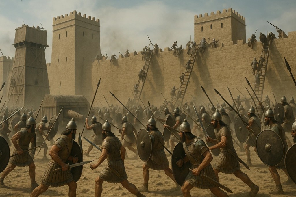 Los asedios, así como los enfrentamientos entre dos ejércitos, fueron una parte importante de la guerra en la Antigua Mesopotamia. Por lo general el ejército invasor llegaba a una ciudad rodeándola por completo. Luego exigían la rendición de la ciudad asediada proclamando que era un mandato de los dioses. Si la ciudad se resistía, el ejército invasor levantaba un campamento fortificado rodeando la ciudad para cortar toda línea de suministros. Cuando la ciudad estaba debilitada, el ejército invasor asaltaba las murallas con sus máquinas de guerra y técnicas de asalto; entre las más extremas y disciplinadas estaban las de los asirios, las cuáles incluían: el uso del ariete o Neshu (acadio) para derribar murallas o puertas; el uso de torres de asedio móviles o Birtu (acadio) para traspasar los muros; escaleras de asalto o Shaqu para ascender en los muros; rampas de asedio o Adru (acadio) construidas para escalar hasta los muros; túneles de asedio o quppu (acadio), es decir, túneles excavados por debajo de las murallas para derribarlas y provocar un boquete de acceso. Por lo general la ciudad atacada y vencida terminaba siendo arrasada y quemada, con sus habitantes vejados o tomados como esclavos. Los soldados tomaban el botín de las casas asaltadas. En otras situaciones los pobladores eran deportados hacia otras ciudades distantes o regiones de difícil acceso para evitar futuras revueltas.