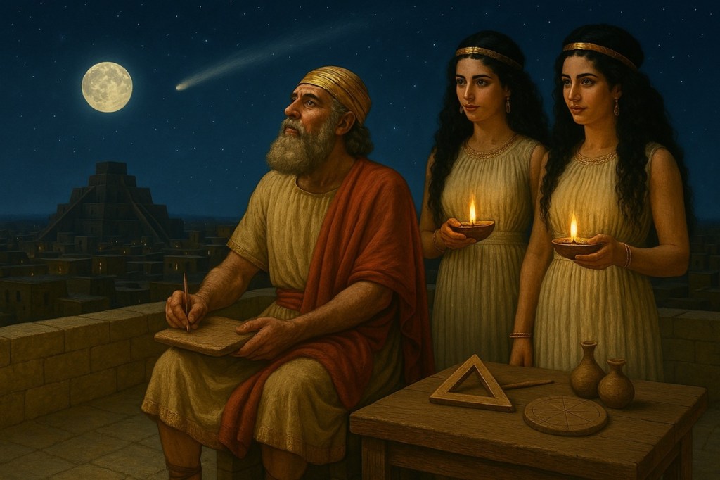 Los mesopotámicos en general destacaron en la astronomía, específicamente en la cronología del tiempo. Practicaron la geometría, especialmente los asirios y caldeos. Destacaron también en las matemáticas. Sus observaciones en el cielo nocturno lo hacían a simple vista sin la ayuda de telescopios. Gracias a sus observaciones astronómicas establecieron en Mesopotamia un calendario calculando el comportamiento del sol y principalmente los ciclos lunares de 28 días con 12 meses lunares. Los ciclos lunares de 28 días daban como resultado un año de 12 meses lunares con algunos días sobrantes; por lo que los sacerdotes astrónomos para mantener el año lunar en sintonía con el año solar de 365 días, agregaban un mes lunar adicional al calendario cada tres años aproximadamente, lo que daba como resultado un año lunar de 13 meses lunares.