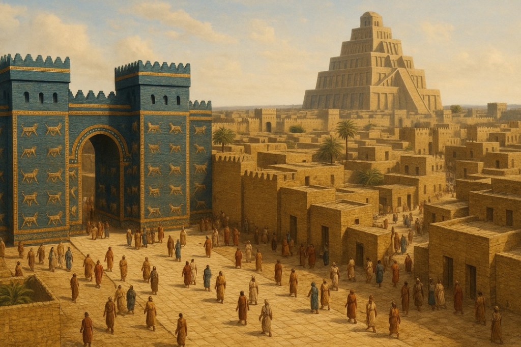 Un ejemplo de esta actividad ciudadana aconteció en Babilonia, una ciudad grande que cubría una superficie de 850 hectáreas, conteniendo a más de 1000 templos dedicados a los dioses (entre templos mayores, menores y capillas). Su población aproximada era a los 100,000 habitantes con el río Eufrates cruzando una parte de la urbe rodeada por un muralla que la protegía de ataques externos y que contaba con 8 puertas de acceso, cada una nombrada en honor a un dios; la más famosa fue la de la diosa Ishtar o «Puerta de Ishtar» de 25 metros de alto y decorada con ladrillos esmaltados de lapislázuli con bajo relieves de dragones, toros, leones y otros animales.
