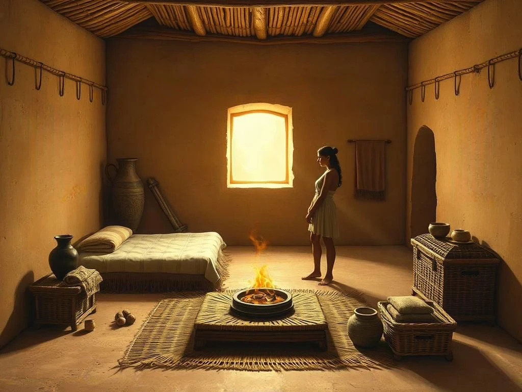 Las clases altas podían permitirse objetos mas suntuosos hechos de bronce, oro o plata y tener casas de dos plantas con mayores comodidades. Por la noche utilizaban lámparas de barro con aceite de sésamo para iluminar el ambiente. En el invierno se utilizaban braseros para calentarse o un pozo poco profundo revestido con arcilla quemando en ellos hojas de palmera o leña de palmera. Sin embargo, las antorchas eran utilizadas en palacios, templos, fortalezas y casas grandes. Los retretes eran simples agujeros con una fosa recubierta de cerámica para impedir la fuga de excrementos y el asiento del retrete estaba hecho con ladrillos.