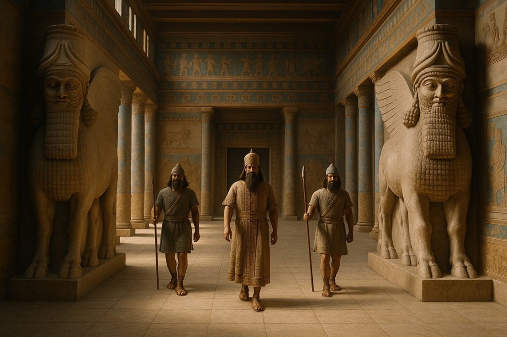 En Mesopotamia destacaron los palacios asirios dentro de sus ciudades rodeados de murallas. Sus puertas estaban recubiertas de bronce, sus muros de ladrillo vidriado, con columnas y techos de cedro. La antesala que precedía al salón del trono real era espaciosa, con relieves de escenas de guerra y de caza pintados de brillantes colores, conteniendo las estatuas de 4 metros de altura del Lamassu, un ser mítico con cuerpo de toro, alas de águila y cabeza humana, cuyo papel era, en la mitología asiria, la de servir de guardianes en las puertas de los palacios, representando además la fuerza y el coraje. Palacios famosos en la historia de Mesopotamia fueron: el Palacio de Mari (hacia el siglo XVIII a.C.): el cuál contaba con más de 300 habitaciones y murales impresionantes como un ejemplo de la sofisticación e ingieniería mesopotámica; el Palacio de Sargón II en Dur-Sharrukin (del siglo VIII a.C.) como un complejo amurallado (más bien fortaleza) con relieves de piedra y enormes estatuas guardianas; el Palacio de Nabucodonosor II en Babilonia (siglo VI a.C.) junto con la famosa «Puerta de Ishtar» y los legendarios «Jardines Colgantes de Babilonia».