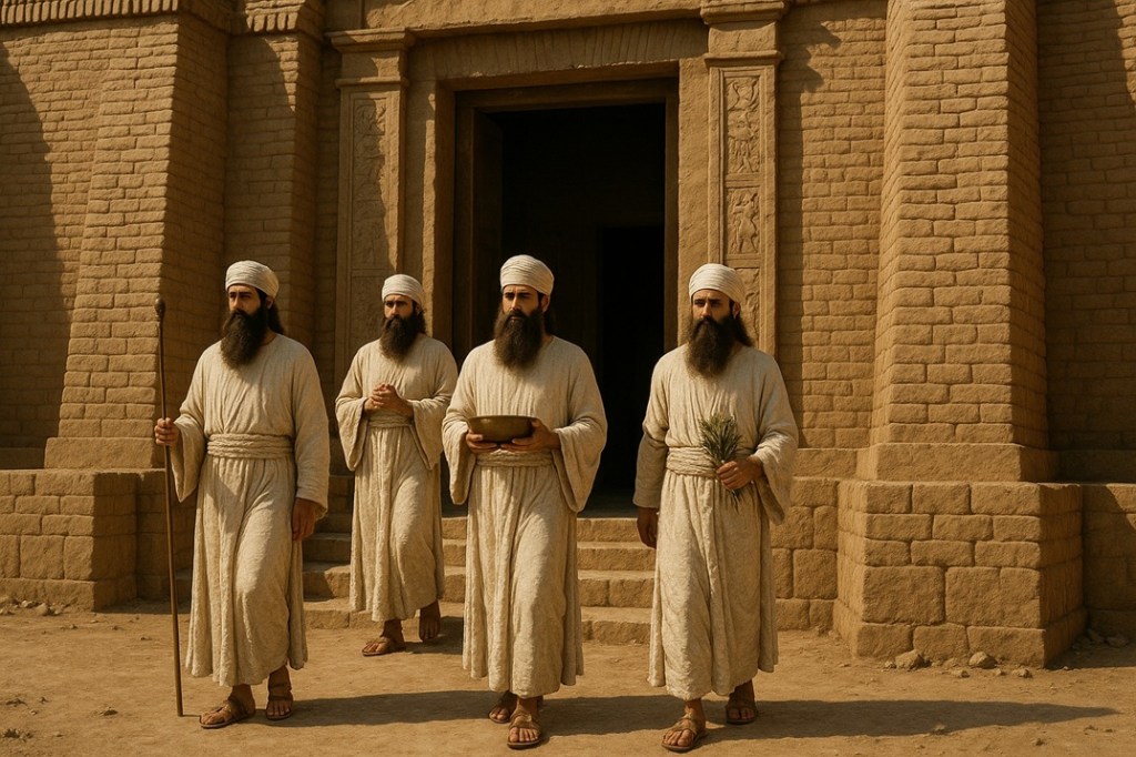 Los inspectores de los templos, que vigilaban todo lo que ingresaba y salía de los talleres y almacenes del templo, eran los: Shatammú. A los sacerdotes escribas del templo se les llamaba: Tupsharru. El sacerdote encargado del sacrificio en el altar era el: Nash Patri.