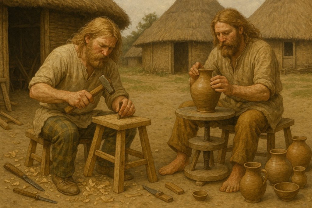 El torno del alfaferero, inventado hacia el IV Milenio a.C. en Mesopotamia y Egipto y alcanzaría Europa hacia el siglo VIII a.C. Los celtas lo incorporarían hacia el siglo III a.C. con la influencia romana, lo que les permitió aumentar la producción de productos de cerámica, valiosa como contenedores de agua o granos básicos. Antes del uso del torno de alfarero, los celtas producían su cerámica a mano, utilizando técnicas de modelado sin el uso de un torno.