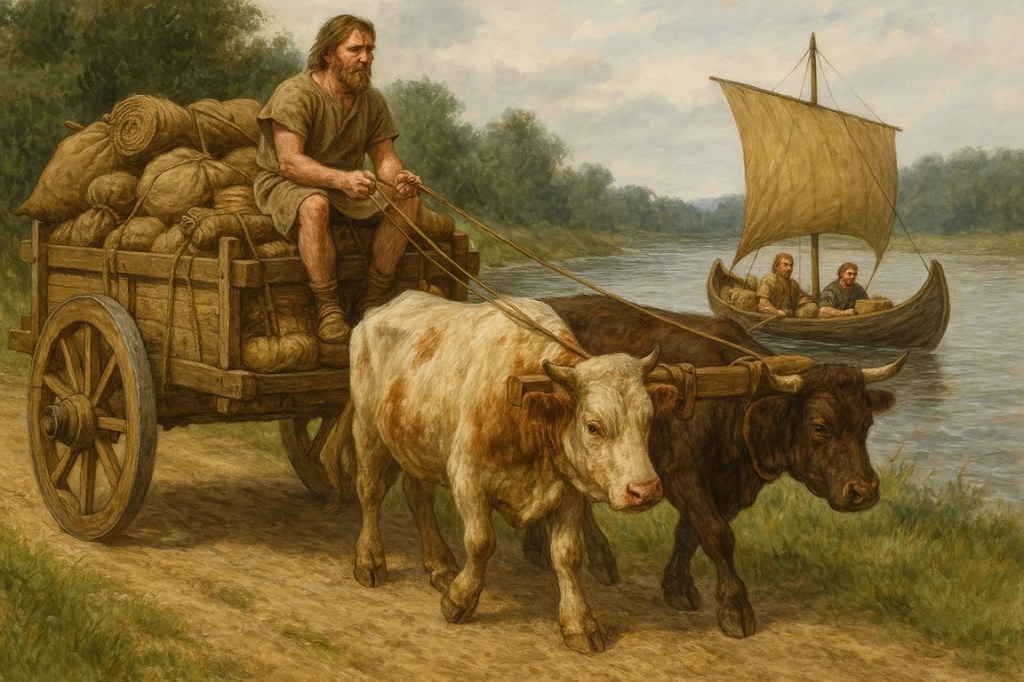 Antes de la llegada de los romanos a tierras del occidente Europeo, los celtas ya habían construido caminos y puentes que conectaban diversos territorios celtas vitales para las comunicaciones y como formas de rutas comerciales definidas que conectaban a las tribus entre sí como a las culturas mediterráneas: griega, etrusca y la romana. Las rutas terrestres de los comerciantes celtas eran caminos y senderos, los cuáles recorrían a pie. Contaban también para el transporte y el comercio con carros de madera de cuatro ruedas desde el período de Hallstatt y de dos ruedas en el período de La Tène para transportar mercancías, especialmente las más pesadas. Estos carromatos se caracterizaban por su estructura ligera, generalmente tirados por caballo; en las Islas Británicas por caballos más pequeños pero robustos; otros por el contrario estaban tirados por bueyes. En zonas montañosas viajaban utilizando caballos junto a asnos o burros para transportar sus mercancías. Algunos comerciantes celtas viajaban solos y otros en caravanas.