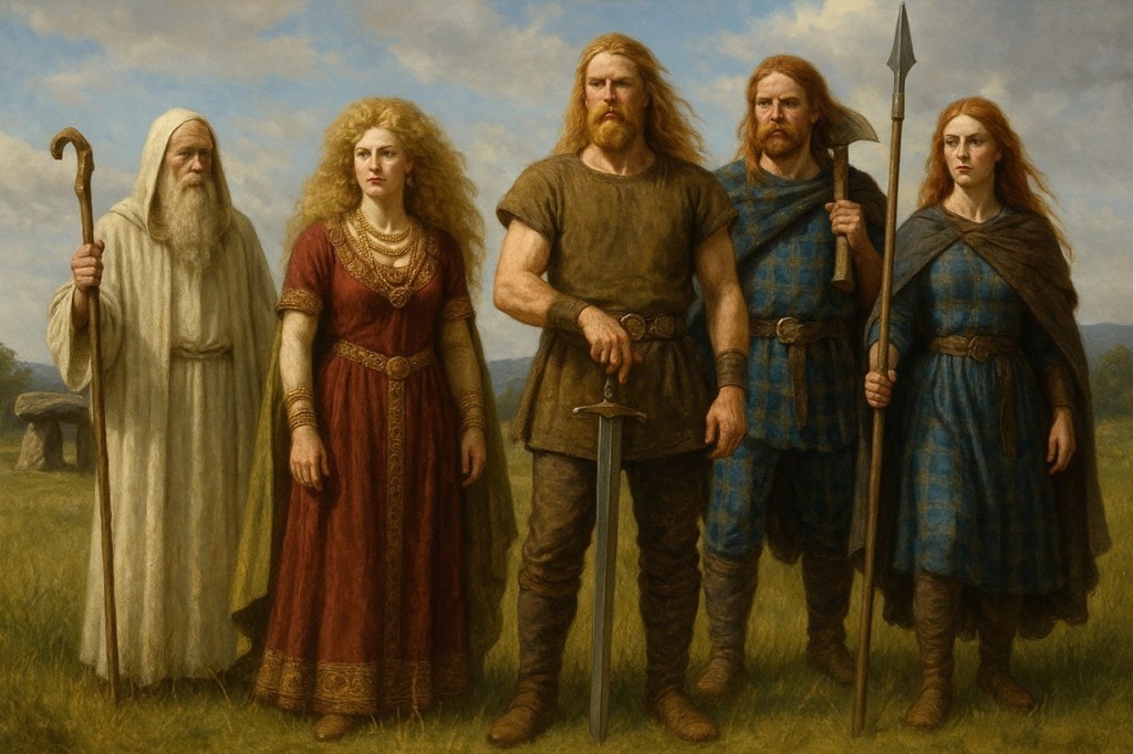 Seguidamente estaba la clase sacerdotal o «Los Druidas» quienes tuvieron gran influencia sobre la población, encargados de las actividades religiosas entre los celtas, además de la administración de la justicia y de instructores como maestros y médicos frente al resto de la población. Es característico su rol influyente en diversos clanes o tribus, conformando un estrato sólido en la sociedad celta. Su autoridad provenía de su sabiduría, la experiencia en temas jurídicos y religiosos y su relación con la naturaleza y los eventos meteorológicos; ya que la gran mayoría de sus cultos y ritos eran oficiados en bosques junto a robles y encinas, por lo que fueron considerados «mediadores de los dioses» para con los habitantes y expertos en temas de la flora y la fauna. La dirección de liturgias y las festividades estaba bajo su cargo.