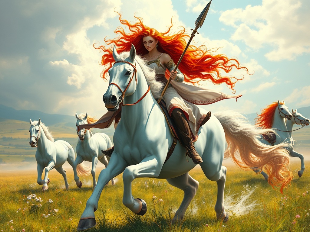 Epona: diosa celta de la fertilidad y los caballos. Fue venerada por los galos y en España. En Irlanda era conocida como: Edain. Su nombre proviene de la palabra céltica Epos que significa: “caballo”. Generalmente era representada como una diosa montada en un caballo. Según sus atributos podía tomar la forma de una yegua. Entre sus símbolos estaban una cornucopia y un cuenco para libaciones rituales. Debido a que en la mitología celta los caballos eran guías del alma en el otro mundo se consideró a esta diosa por su protección a los caballos como diosa de la muerte.