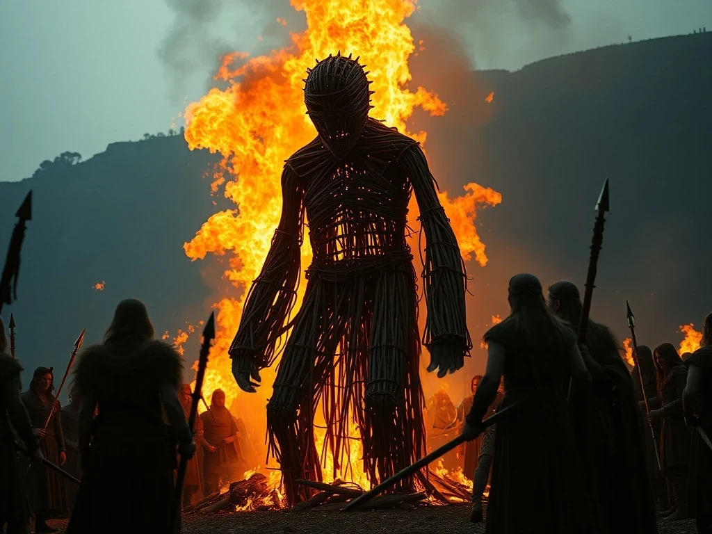 Julio César describe en su obra: «Los galos creen que los dioses se complacen más en la muerte de un hombre, por lo que recurren a sacrificios humanos. Algunos construyen enormes figuras de mimbre, en las que colocan hombres vivos, y luego les prenden fuego para que ardan en llamas». Otros escritores romanos como Estrabón también mencionan el «Hombre de Mimbre». Sin embargo, existe cierta controversia sobre este tipo de rituales con efigies de forma humana a manera de celdas para incinerar animales o humanos; ya que la evidencia arqueológica sobre estos sacrificios es nula o escasa tomando en cuenta las crónicas de Julio César, sin pruebas concluyentes sobre la realización de sacrificios de esta forma, por lo que algunos historiadores teorizan que los romanos distorsionaron o exageraron este tipo de prácticas para justificar su conquista sobre los pueblos celtas.