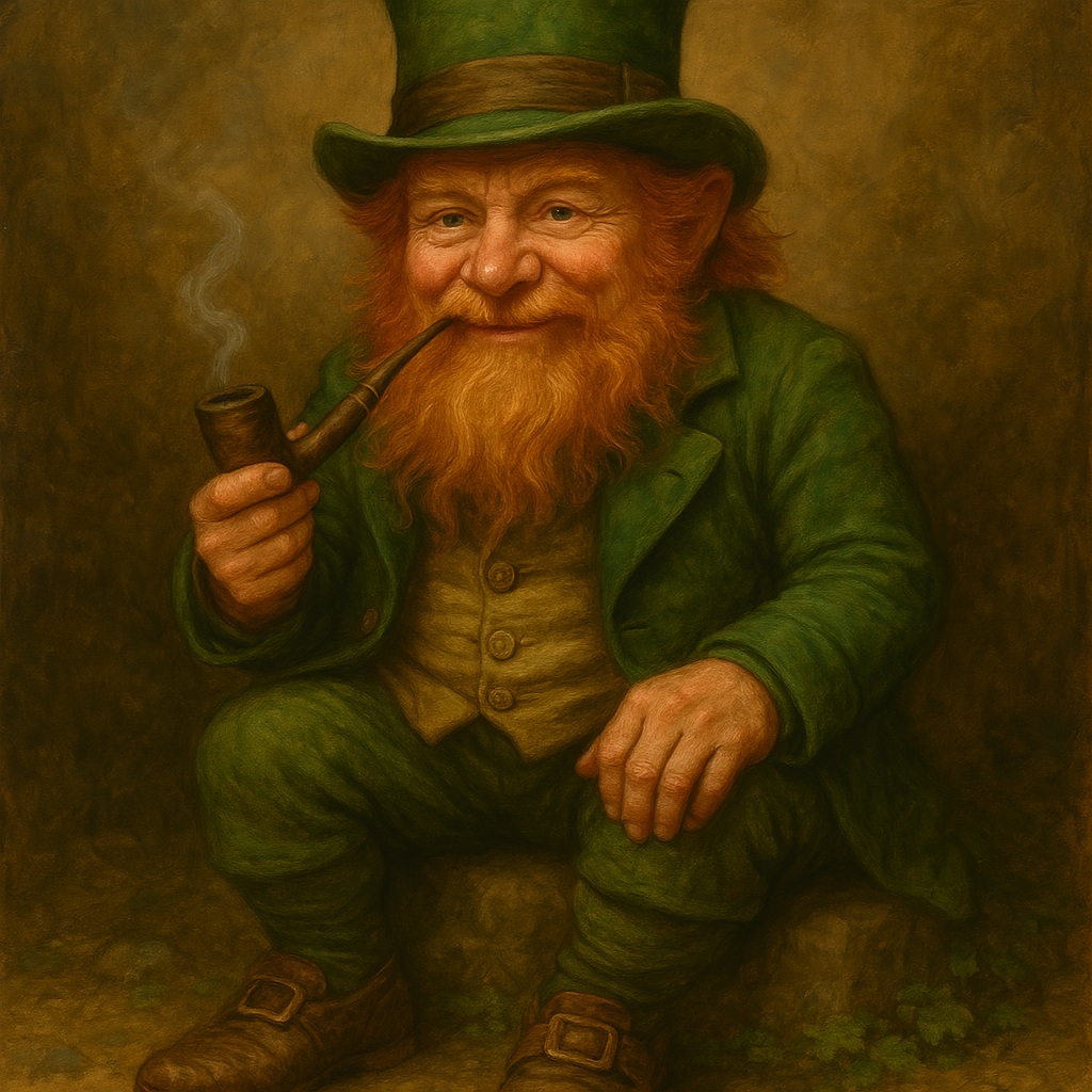 El Leprechaun: El Leprechaun es una figura parte del folclore irlandés con orígenes en la mitología celta. Según el mito es un duende astuto, travieso y solitario, conocido por custodiar un tesoro oculto, por lo común en una marmita que esconden al final de un arcoiris, poseen una moneda mágica que siempre retorna a su bolsillo y visten de verde con una chistera, zapatos con hebillas doradas y siempre usan una pipa. Por lo general miden entre 30 y 50 cms. Son conocidos en los relatos por ser muy astutos y difíciles de atrapar, pueden revelar el escondite de su oro si no se les pierde de vista al capturarlos y fabrican los zapatos de las hadas.