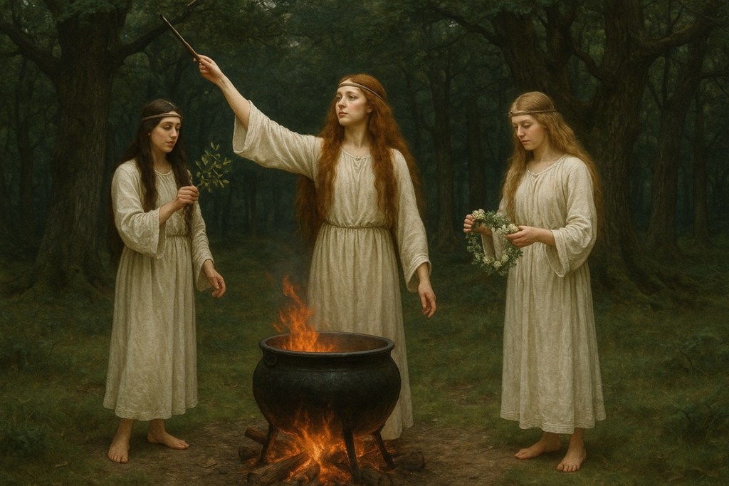 Cerridwen: diosa celta galesa relacionada con la adivinación y la sabiduría. Según el mito de esta diosa: era madre de tres hijos: Morvan, un guerrero fuerte y valiente en la batalla; Crearwy, la mujer más hermosa del mundo; y Afagduu quien era terriblemente feo. Cerridwen decidió compensar la fealdad de este último hijo volviéndolo el mejor bardo entre los galeses; para ello preparó una poción de la cual solo las tres primeras gotas serían mágicas para beber, siendo el resto un letal veneno. Por esta razón su principal atributo fue el de una diosa “bruja”. Era representada como una bruja al lado de un caldero.