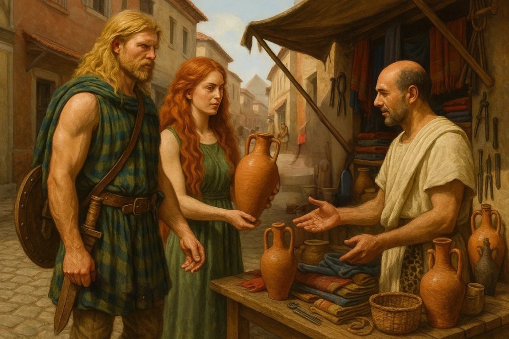 El comercio regional entre los celtas pudo haber iniciado en formas de intercambio de obsequios entre líderes tribales. Como ejemplo: «El caldero de Gundestrup», datado entre el siglo 150 a.C. y el I a.C., como una pieza de plata decorada con intrincados relieves de diversas figuras relativos a la cultura celta, encontrado en Dinamarca, tierra de los Escandinavos, que probablemente fue un regalo entre gobernantes producto de relaciones diplomáticas o producto de relaciones comerciales locales, que evolucionó a un dinamismo comercial, manifestado por redes de comercio regionales hasta establecer los mercados celtas. Estos mercados fueron vibrantes centros de intercambio donde se comerciaba materias primas, bienes manufacturados y productos alimenticios. Estos mercados celtas solían ser ferias periódicas donde comerciantes y artesanos celtas se reunían para vender e intercambiar bienes en las aldeas o poblaciones grandes; no eran estructuras permanentes como los mercados romanos, sino ocasionales.